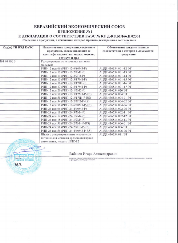 РИП-24 (исп.50) используется для работы в составе ИСО "Орион" для питания извещателей, приборов ОПС, СКУД и пожарной автоматики. РИП рассчитан на непрерывный круглосуточный режим работы с заданными выходными параметрами, с автоматическим контролем и зарядом герметичных аккумуляторных батарей. Особенности прибора: передача событий на пульт "С2000М" или АРМ "Орион Про"; измерение и передача данных по запросу от "С2000М" или АРМ "Орион Про"; расширенный диапазон входного напряжения сети, металлический корпус и т.д. РИП обеспечивает световую индикацию; звуковую сигнализацию; датчик вскрытия корпуса; защиту от перенапряжения, от КЗ, от переполюсовки АБ; интерфейс RS-485