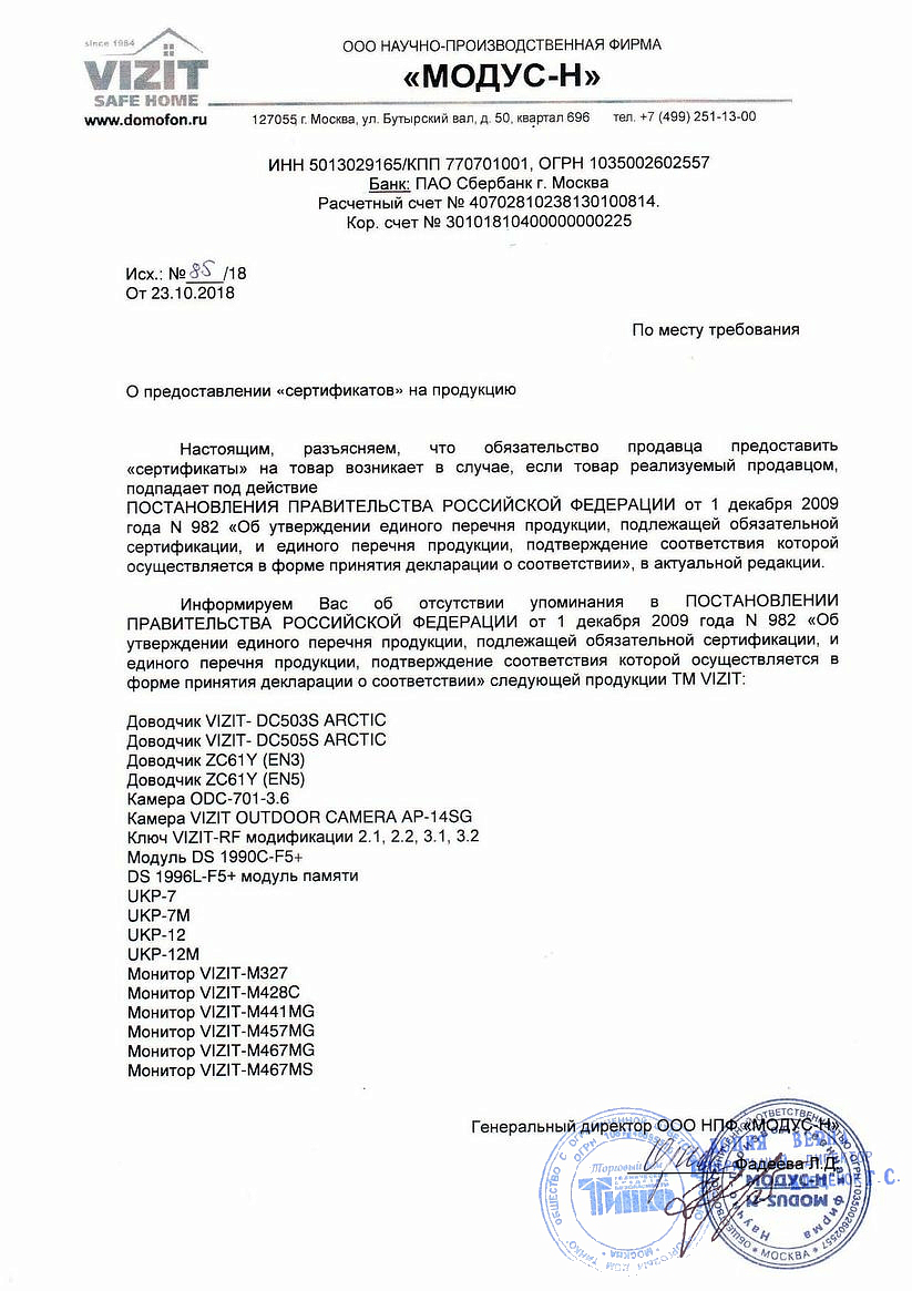• Производитель Vizit