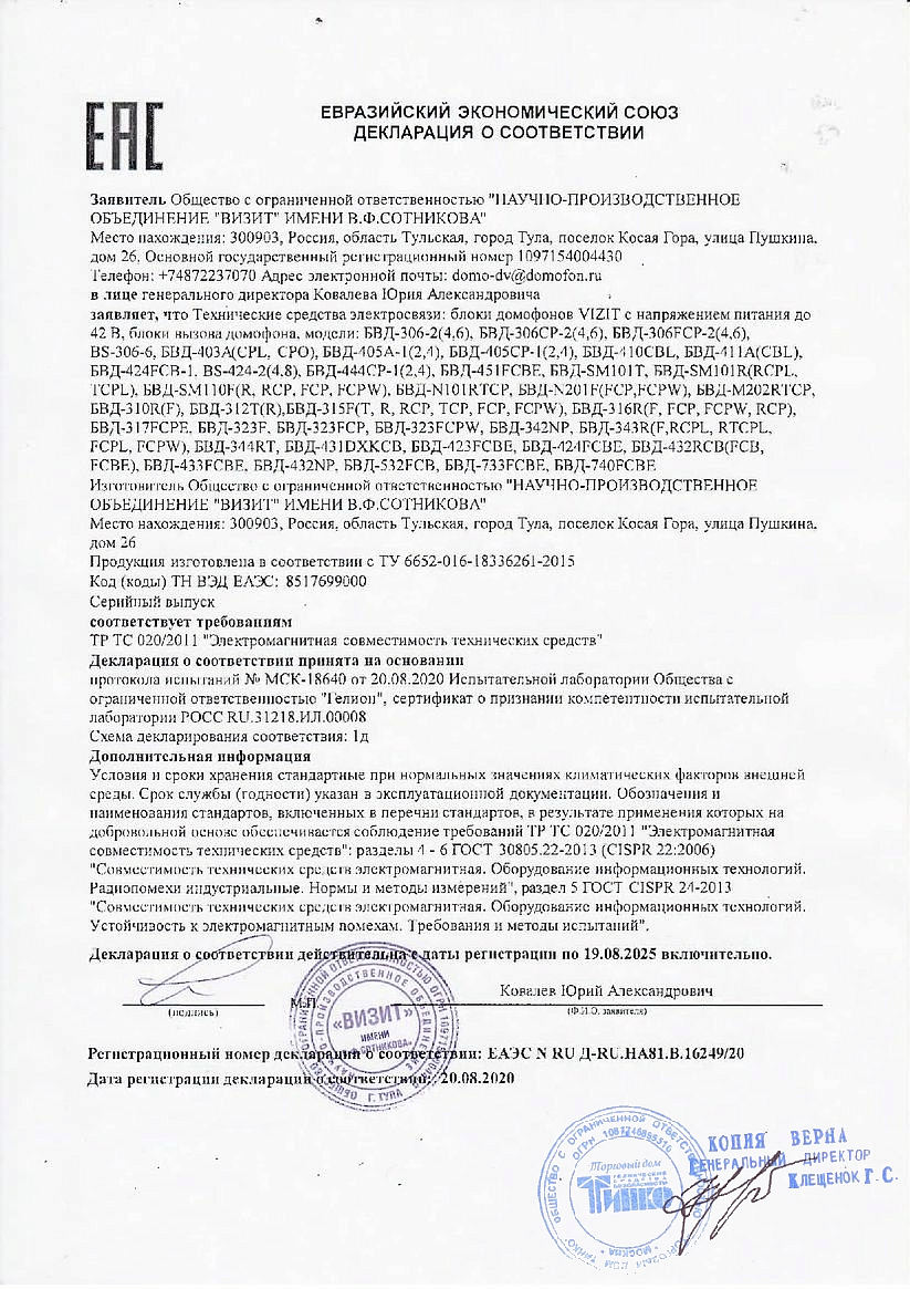 Блок вызова БВД-343FCPL используется совместно с блоком управления БУД-302К-20, БУД-302К-80, БУД-302М как составная часть многоквартирного видеодомофона VIZIT. В качестве ключей доступа используются идентификаторы VIZIT-RF3.x, VIZIT-RF4.x (13.56 MHz, Mifare).
