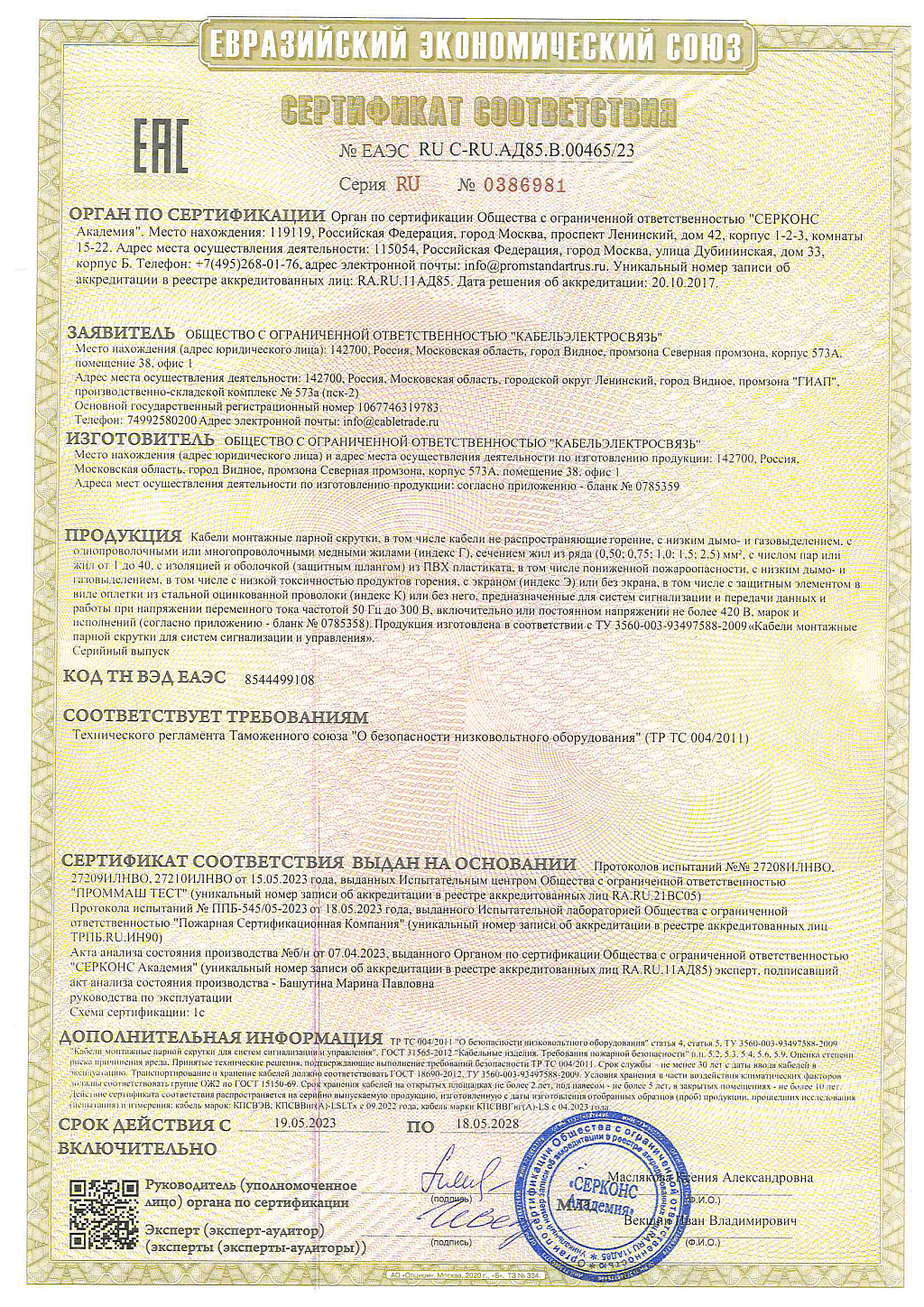 • Производитель Кабельэлектросвязь