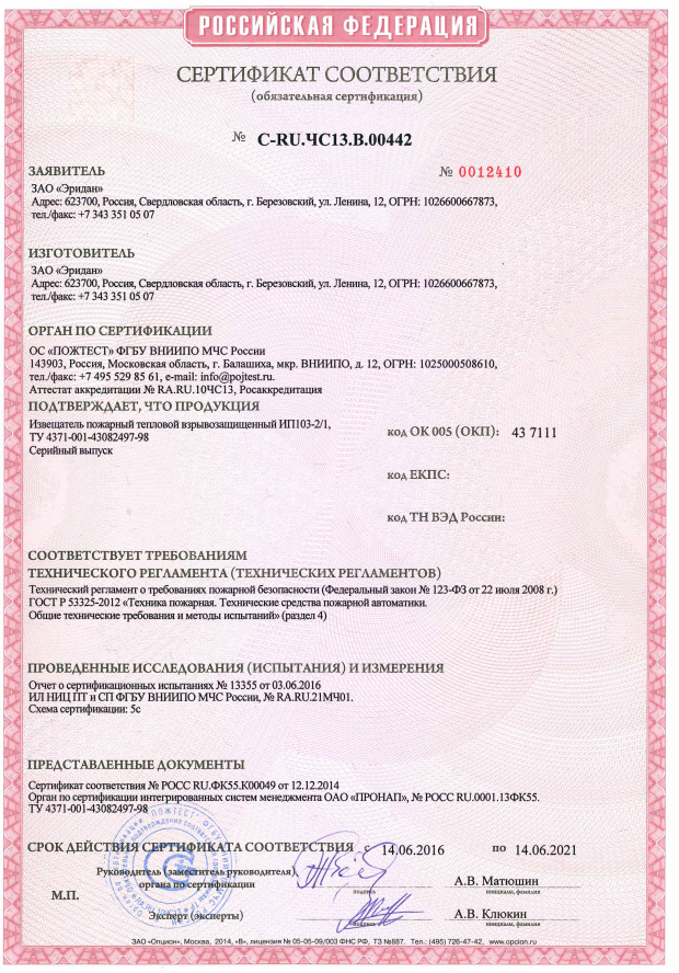 Тепловой максимальный 2-х проводный взрывозащищенный 1Exdm (ia) IICT6X, 2 схемы включения, t-сраб. 64...76°С, корпус - алюминий, U-шс.8...28В, I-деж.30мкА, IP67, t-раб.-55...+85°С, 180х94х160мм. В комплекте 1 кабельный ввод и 1 оконечная заглушка (15мм).