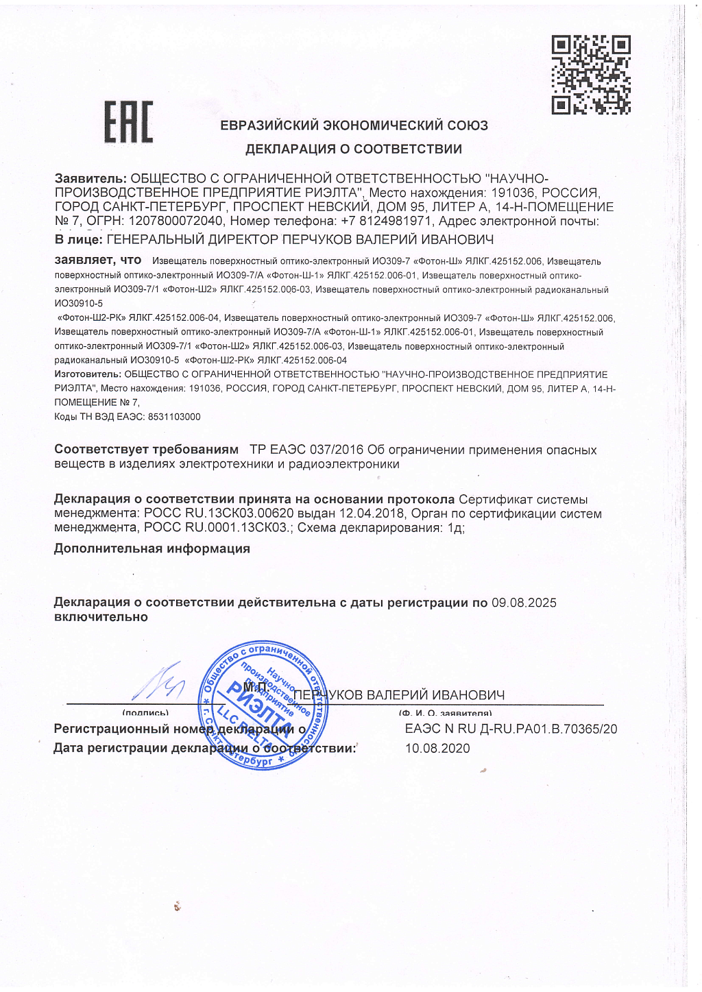 • Температурная компенсация обнаруживающей способности при изменении температуры окружающей среды.