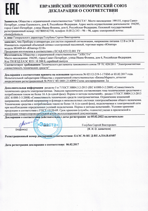 Извещатель охранный Юпитер-5210 предназначен для обнаружения проникновения нарушителя в охраняемое помещение и формирования извещения о тревоге размыканием контактов исполнительного реле.