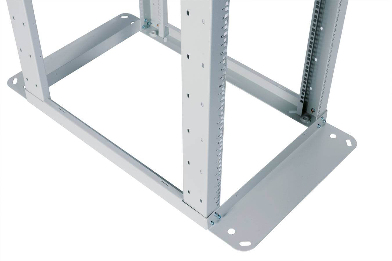 Стойка имеет полностью разборную двухрамную конструкцию, каркас повышенной жесткости скреплен болтами с внутренними шестигранниками. На вертикальные направляющие нанесена юнитовая маркировка.