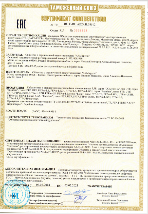 • Категория CAT5e